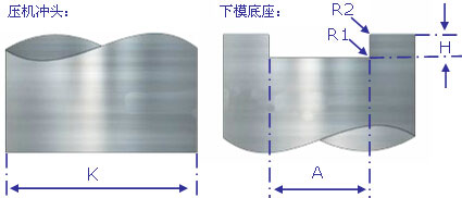 以上方案作为实际作业中的理论参考,具体操作中跟据实际情况作适当调整,材质建议为模具钢。我公司不能提供该配件的供应,工装的制作并不是一个复杂的工程,一般上模会随压铆机的厂商有配套供应,而用户只需跟根据自己板材的形状不同设计制作下模。